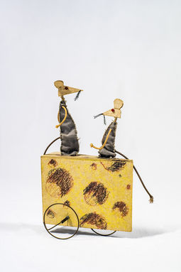 fabric, brass wire and cardboard